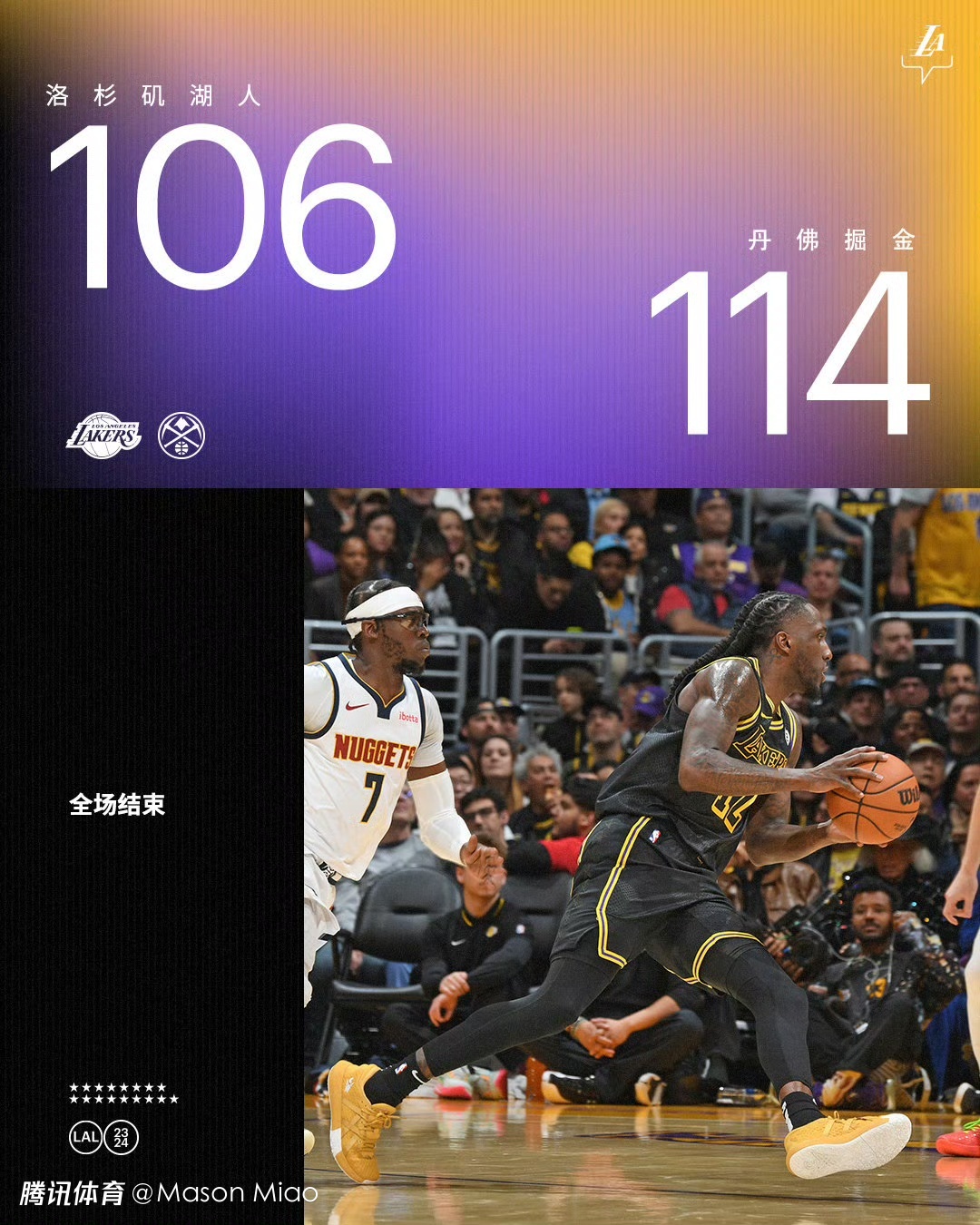 詹姆斯25分9篮板7助攻1抢断1盖帽,浓眉32分9篮板3助攻4盖帽3抢断,里夫斯15分2篮板10助攻2抢断,普林斯13分3篮板2助攻2抢断,八村2分4篮板,克里斯蒂7分2篮板1助攻,伍德3分4篮板1助攻,海斯9分6篮板1助攻2盖帽,梅斯2助攻。 ???#掘金关键10-0终结湖人三连胜#