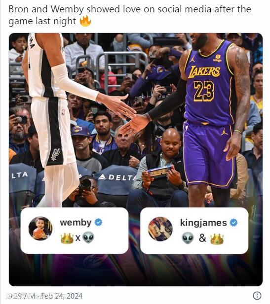 勒布朗甚至在赛后在自己的社交网络上高度赞扬了文班。