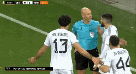 欧联杯很有戏剧性的一幕:勒沃库森绝杀卡拉巴赫之战,塞费库里耶夫拉倒弗林蓬,主裁泰勒出黄牌