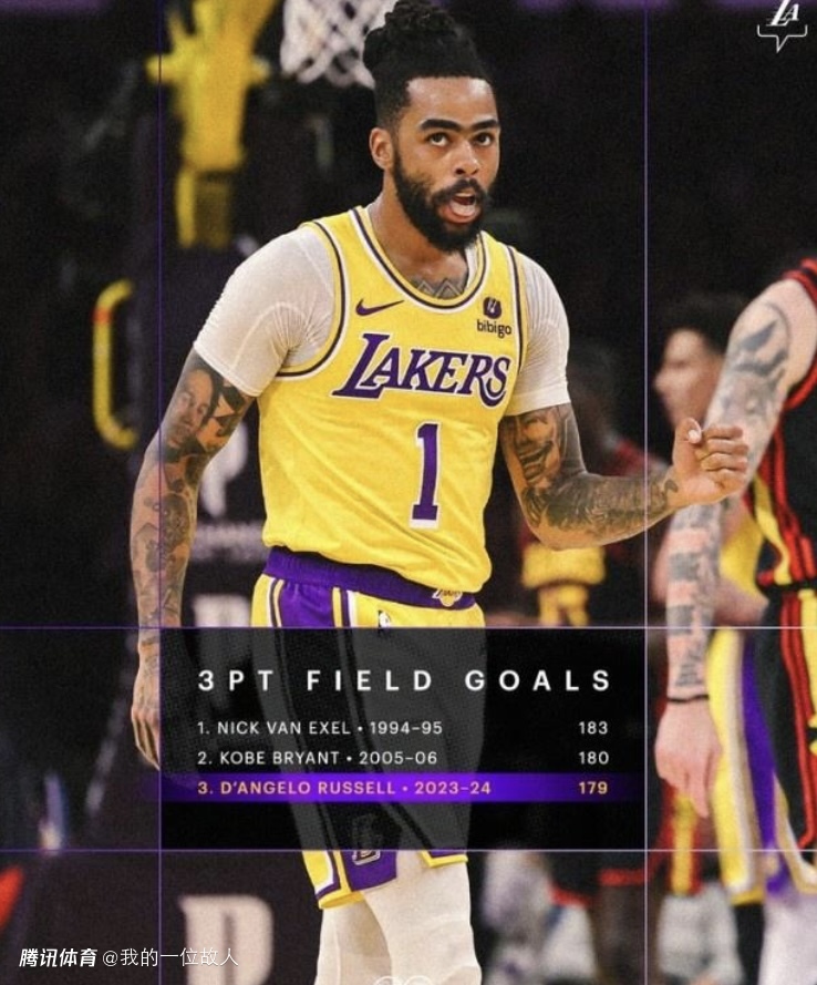 拉塞尔单赛季183个三分!湖人队史第一人!佩林卡夏天做的最出色的决定就是保留了拉塞尔,没让他重走卡鲁索的旧路!