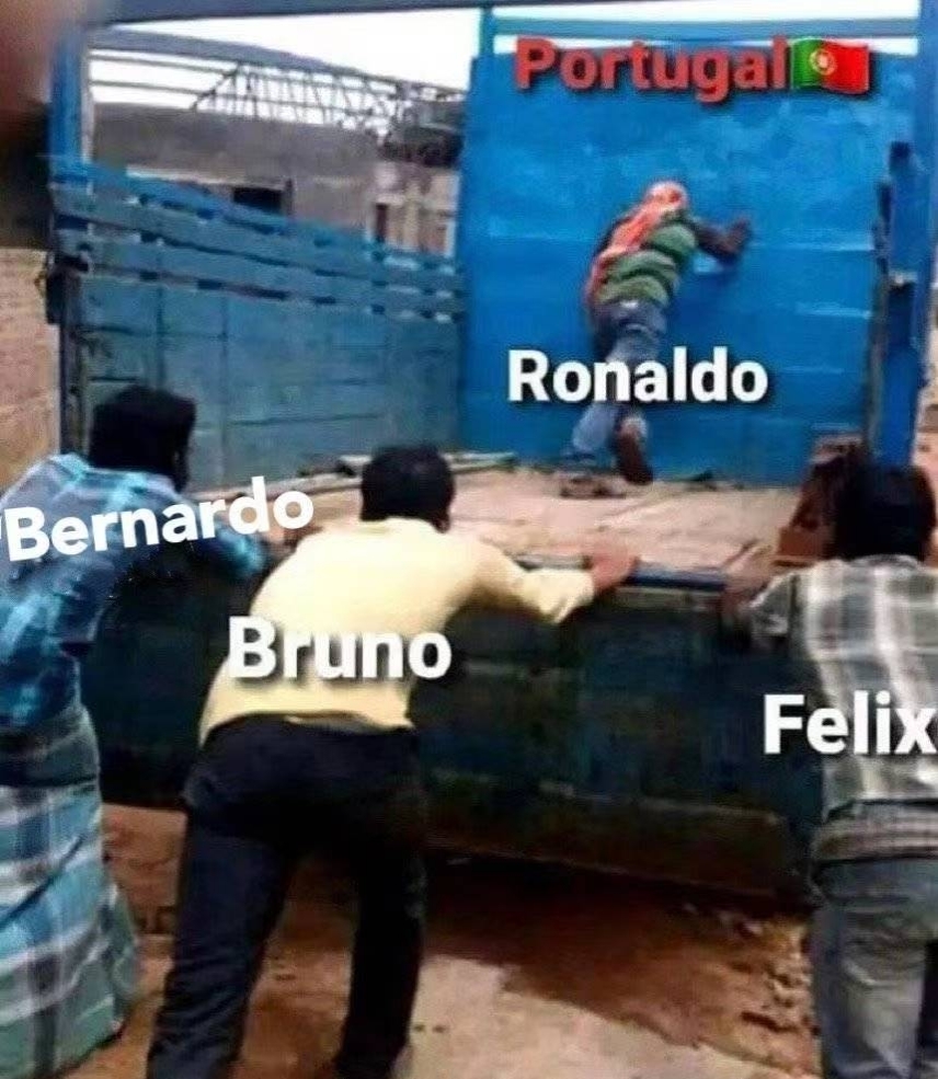 网上什么鸟图都有系列之2: 葡萄牙队这辆大车,需要大伙儿共同推着它向前进。 尽管推进时的站位和方式有区别…… [咧嘴笑][咧嘴笑][咧嘴笑]#葡萄牙##B费##B席#