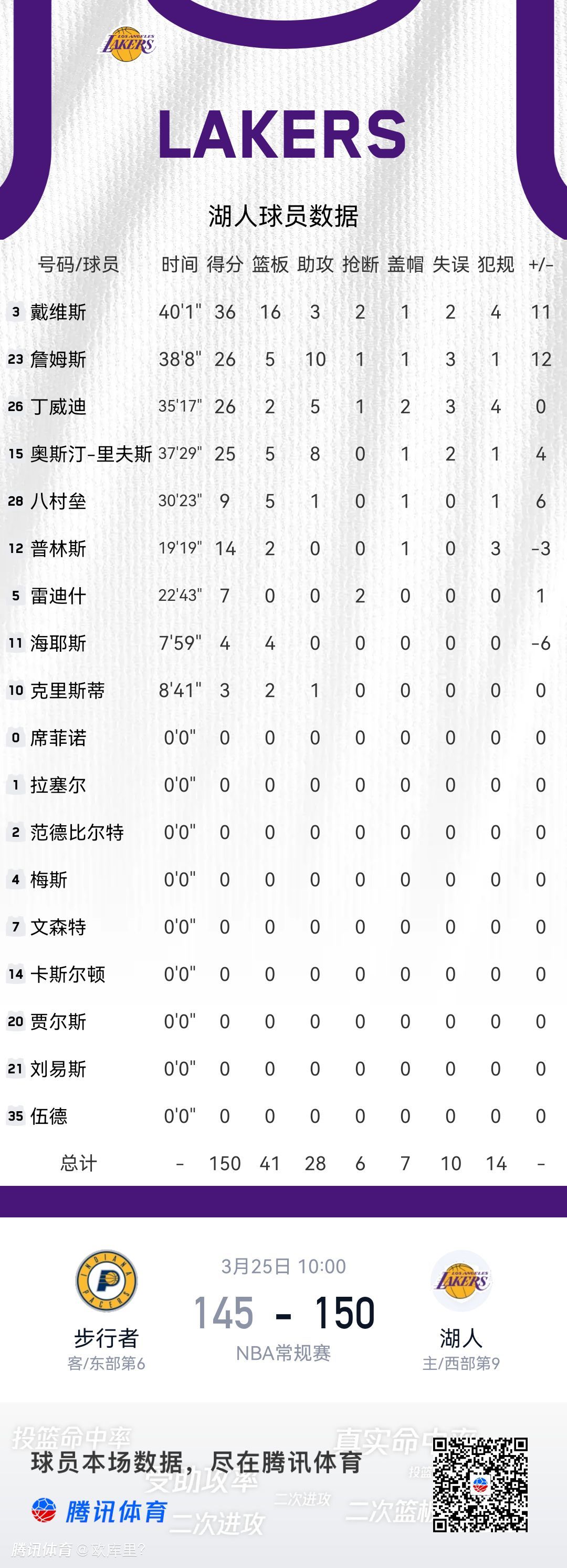 果然还得是强如老詹[认可] 打了三十八分钟[666] #三连胜!詹皇两双湖人力克步行者##勇士惜败森林狼 与火箭排名逼近##哈登两双快船末节崩盘不敌76人#也许您还喜欢:世界杯直播 亚洲杯直播 欧洲杯直播 足球直播