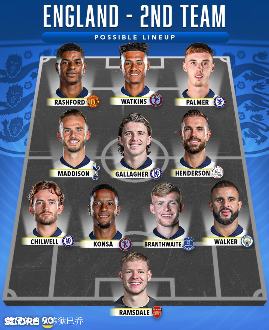 英格兰的五套阵容 第一阵容中前场世界顶级 五套阵容中右后卫世界顶级