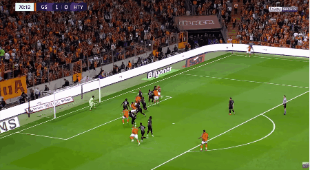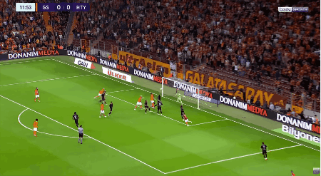 第12分钟,梅尔滕斯开出右侧角球,伊卡尔迪头槌破网,加拉塔萨雷1-0领先。