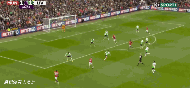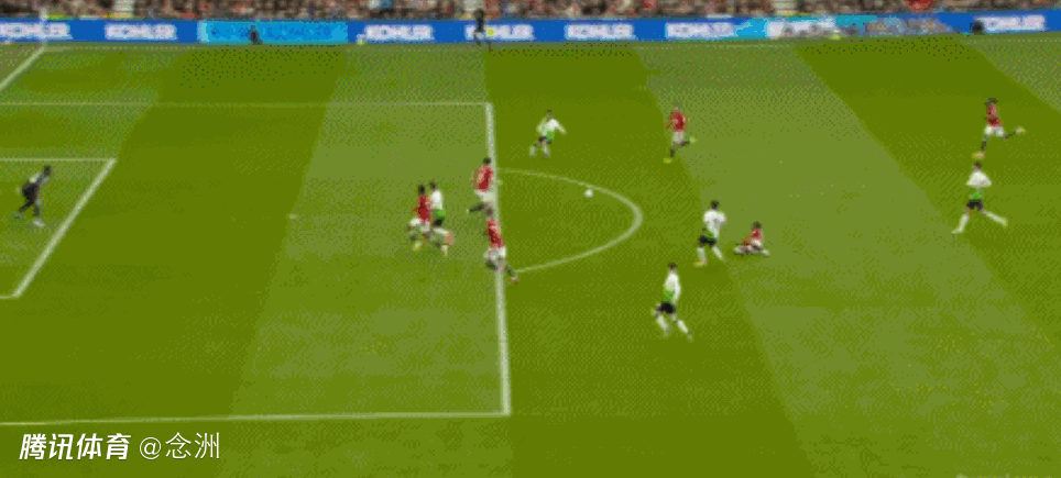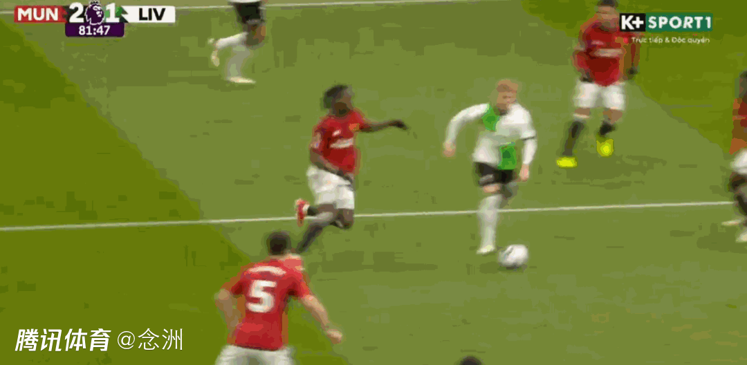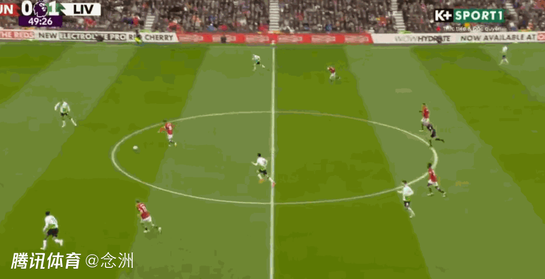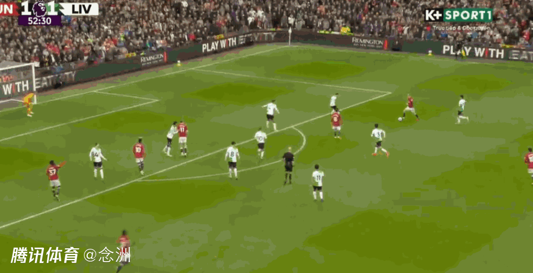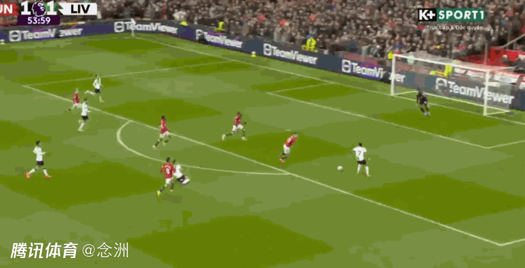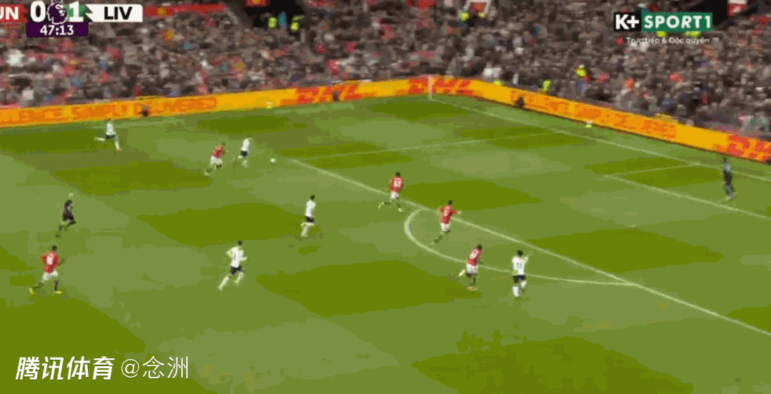 第50分钟,宽萨传球失误,凯莱赫站位太靠前,B费中圈附近断球右脚直接吊射入网,1-1!曼联扳平。