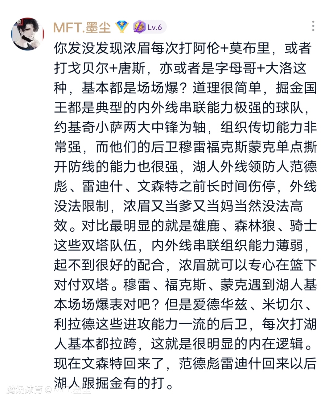 简单解析一下,为什么浓眉面对约老师和小萨打不出来这个问题。湖蜜们不要再无厘头喷浓眉了,这还真不是他的锅,理性看待。#升西部第八!湖人大胜骑士#也许您还喜欢:世界杯直播 亚洲杯直播 欧洲杯直播 足球直播