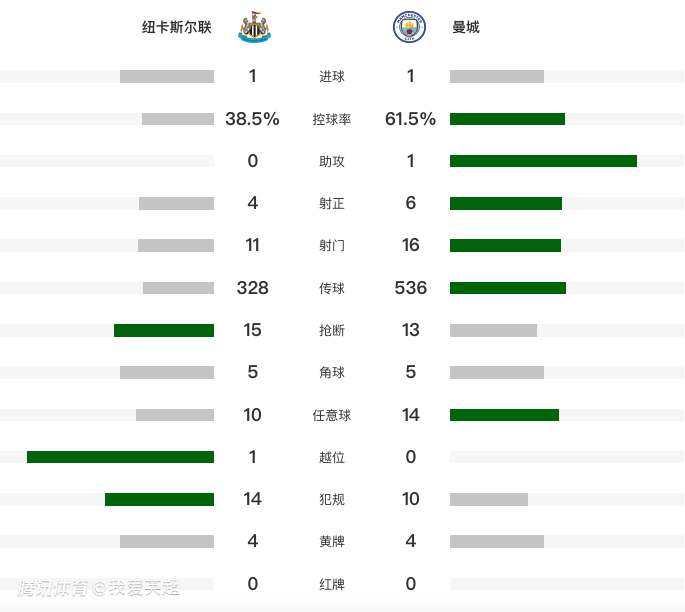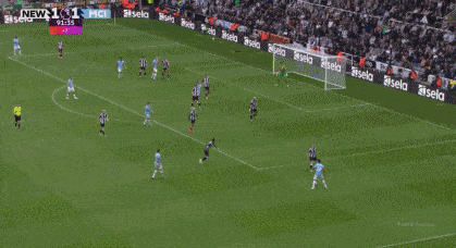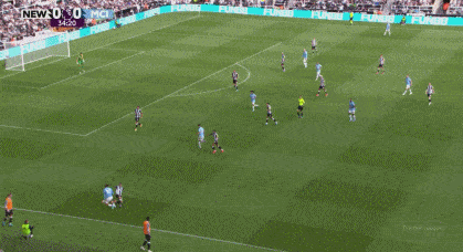 第56分钟,戈登单刀机会在晃过门将的时候,被埃德森放倒,裁判判罚点球并出示黄牌。戈登亲自主罚命中,纽卡扳平比分。
