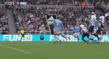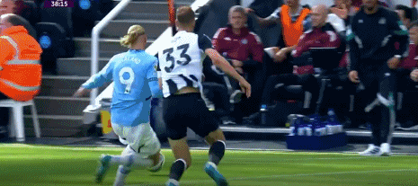 第52分钟,托纳利被格拉利什肘倒,曼城继续进攻引起纽卡不满。