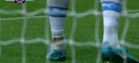 第37分钟,镜头给到哈兰德的脚后跟已经流血,是此前与丹-伯恩对抗时被踩到脚后跟。