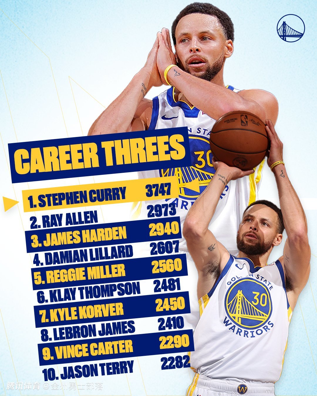 库里上赛季投进了 253 个三分球,距离成为 NBA 历史上第一位职业生涯常规赛三分命中数达到 4,000 个的球员不远了。也许您还喜欢:世界杯直播 亚洲杯直播 欧洲杯直播 足球直播
