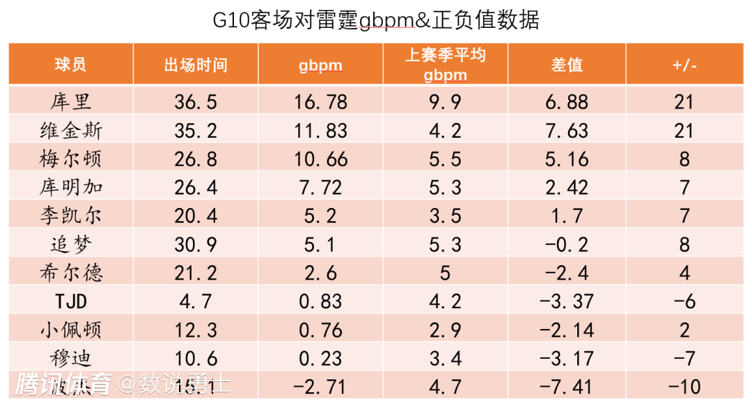 第二套被追分阵容为库里+梅尔顿+小佩顿+维金斯+追梦,这套更奇怪的点是梅尔顿+小佩顿都是外线领防人基本不怎么卡位抢后场板的,那么篮板得靠库里+维金斯+追梦,追梦打5时后场板就是硬伤,疯狂丢板也是顺理成章的。