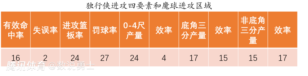 从魔球区域的防守上看,独行侠护框的产效大致在联盟中游偏上水准,特别是莱夫利在场时的护框效果非常出色,相较之下加福德和华盛顿护框时效果会差一些、这些时段可以尝试多攻框。