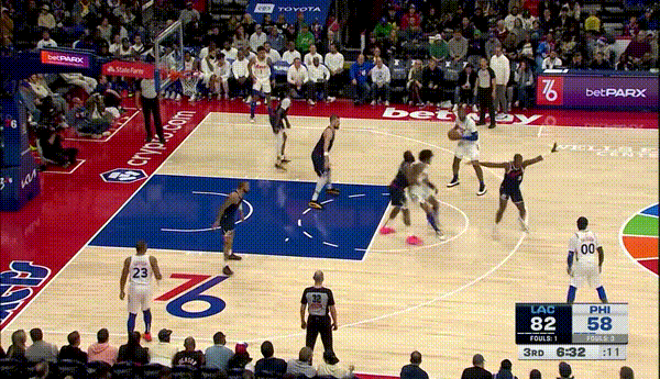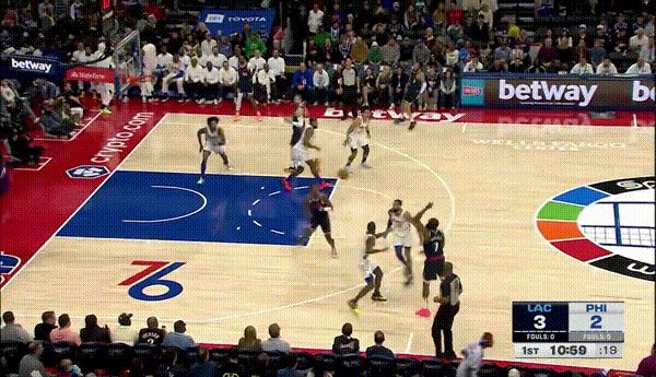 镜头回到第三节初的76人眼中写满了无奈,不论是夹击持球人还是联防收缩禁区都抵挡不住快船如潮水一般攻防两端的压制,曾经靠着自己积极性和抓失误反击的良好判断将分差追进十分上下,转眼间就被琼斯节初抢断拉杆一顿操作叫出了暂停,刚回来还没喘口气紧接着就是邓恩一阵强硬的防守和对抗,早早的让比赛失去了悬念,登哥生涯中这两个人的出现一定程度的弥补了其在首发中防守脚步的弱环,也使这赛季的快船攻防两端更加立体完整。