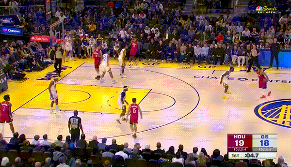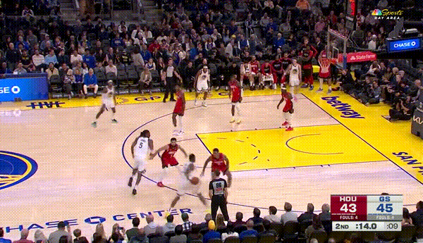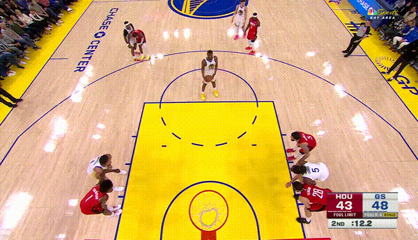 第二节,小佩顿篮下强攻,希尔德灵光一现,勇士紧咬比分。嘴哥迎着狄龙的防守,打成3+1,40平。穆迪三分,鲁尼罚球线中投,45:42,勇士反超了比分。嘴哥面对小贾巴里史密斯的防守,再次打成3+1。嘴哥单节12分,勇士49:43领先结束半场。