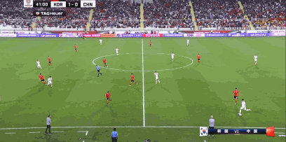 国足很容易让韩国队推过中场,进入中国的后场。中国控球不多,更多是边路硬突破传中以及后场直接长传找前锋。