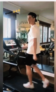 C罗在INS上传了一段边跑步边跳舞的视频,却差点摔倒。面朝镜头,横向摆POSE,不摔你摔谁。。。