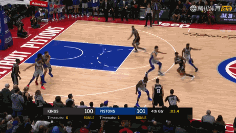面对三人包夹,国王的希尔德巧妙地寻找到出手空间,球进灯亮绝杀活塞!