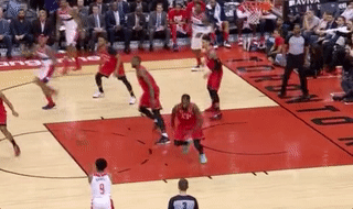 转换进攻不只是简单的快下袭篮,当防守方拿到球权,他们面对的是一整块全场的进攻空间。无半场阵地之憋屈,无掩护挡切之死板,海阔凭鱼跃,天高任鸟飞。想象一下全速冲锋的骑兵对步兵防阵有多大的冲击力,就能明白西亚卡姆这种侵略如火的转换进攻对防守方的威胁。他们被迫全速退防、顾此失彼、被西亚卡姆的冲击力制造出一个个错位和空位机会。就算猛龙被拖入阵地战,他们也能凭借这些错位机会大做文章。