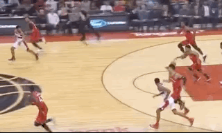 先列一组简单的数据:在本赛季,猛龙场均通过转换进攻得到26.2分,转换进攻得分率高达1.17分,排名联盟第一。而西亚卡姆,每场比赛通过转换进攻能拿到4.8分。就算放眼全联盟,你也很难找出几个快攻能力超过西亚卡姆的球员。