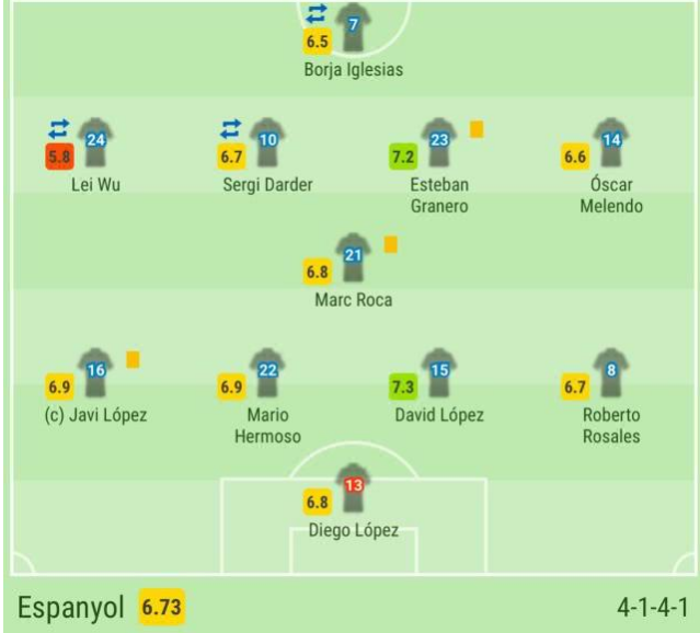 但在两大网站赛后的评分里,武磊都排名球队倒数第一。whoscored的评分中,武磊是6.1分,Espanyol更是只有5.8分!