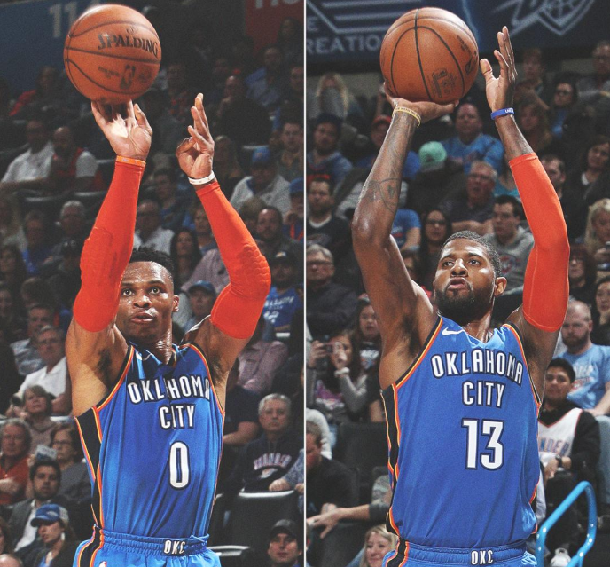本赛季的少爷蜕变的我竟有些不认得,安心防守,串联球队,所有人都在威少身边得到了前所未有的舒适感,少爷的牺牲,队友记得,教练记得,我们记得。这,很够了。少爷在拥有最佳阵容的赛季,却打出了,生涯最低的命中率…真是嘲讽啊,感觉像是命运的捉弄,泡椒一次又一次的打烂会场,强行带走少爷,像极了爱情??。但是,我心里一直坚信一件事,像一个谜底,今天揭开。所谓超巨,就是能在非凡的时刻,能做到非凡的事情,少爷超越张伯伦的时刻,是泡椒命中三分,是给少爷的礼物,泡椒的40+三双,最后一个助攻,是少爷的三分,给泡椒的礼物,双星闪耀!但是有没有想过,在这一切发生至以前,少爷三分,7中0!真实么?很真实,从那一刻起,我就感觉到少爷像是在刻意的压制自己,我看过少爷野球场的比赛,或许,对抗级别不可同日而语,但是少爷并没有你看到的那么不准。