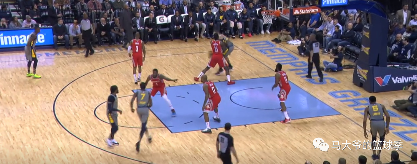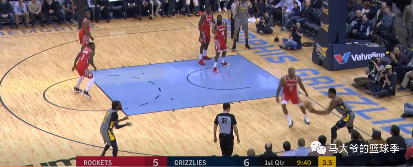 可以看到火箭对灰熊还是做出了一定的针对性布置,他们把香波特拿到首发来主防康利,当瓦蓝丘纳斯内线持球时选择夹击,但是执行力很差,康利依然可以得到空位出手的机会,瓦兰也可以轻松出球。