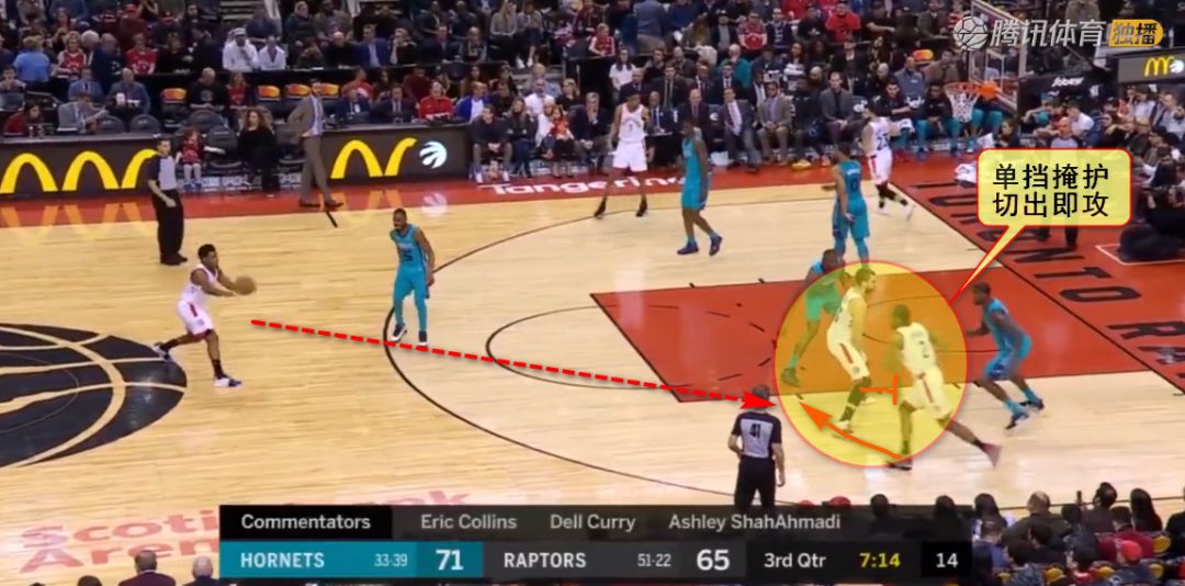 稍微复杂点的,一个单挡掩护。今天打黄蜂,猛龙起码用了两种单挡方式。