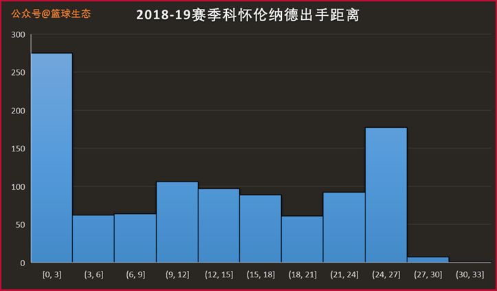 从出手距离看,近框攻击与远射是他能成为适应时代的巨星的原因。而9-18英尺间,突起的三段直方,则告诉我们他之所以是东区中距离之王。