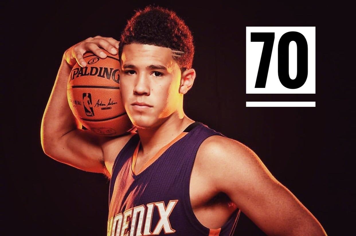在两年前的今天,布克在北岸花园,用40中21,三分11中4,罚球26中24,砍下了70分,成为了最年轻的70分先生