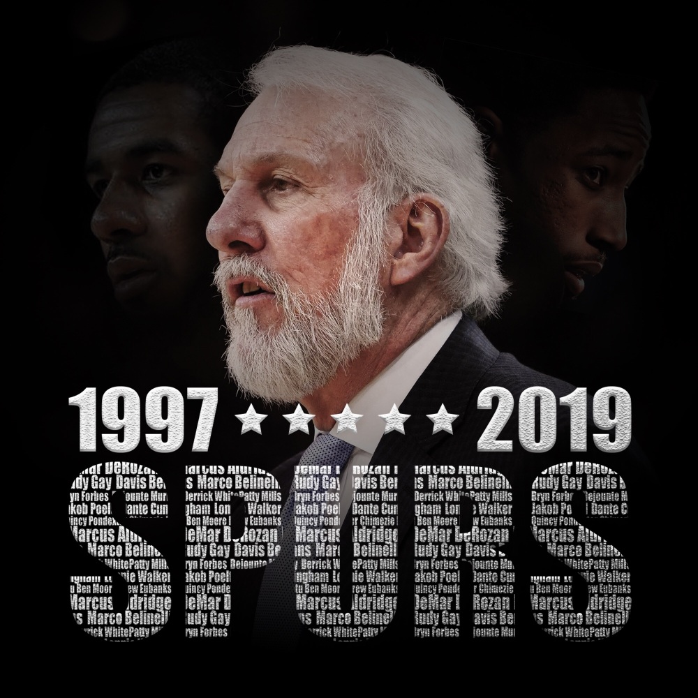 马刺的战术板也在老爷子的与时俱进下,不断地更新着,从双塔到外线持球人组织到团队篮球再到新时代的小球战术,老爷子和他的儿子们用五种不同的方式拿到了五个总冠军(99年的双塔,03年的邓肯单核爆发,05年的妖刀突破,07年的跑车进攻发动,14年的团队篮球),他见证了太多的历史,创造了太多的历史,又或者,他就是历史的一部分了,是我们,在见证历史,见证伟大,与历史共荣辱,同进退。