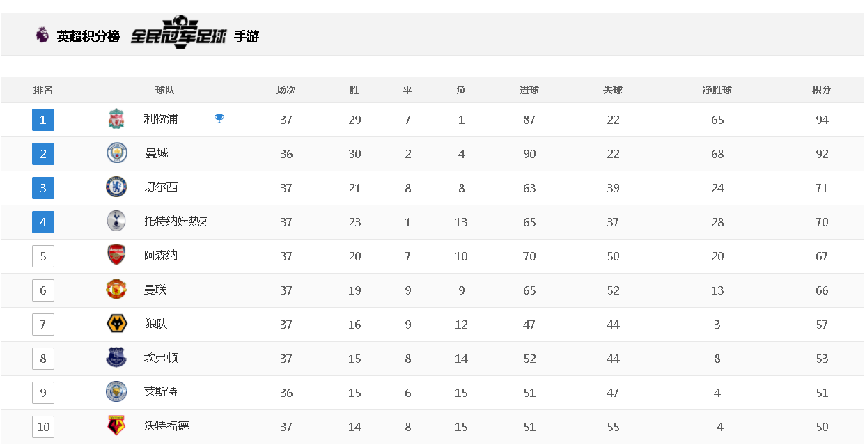 ? ? 目前在积分榜落后排名第四的热刺4分,提前一轮无缘联赛前四。
