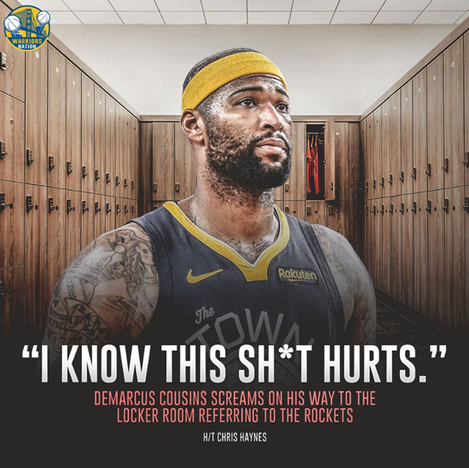 在今天勇士战胜火箭的赛后,考辛斯一路喊着“这tm很伤人,我知道这tm很伤人”回到了更衣室。