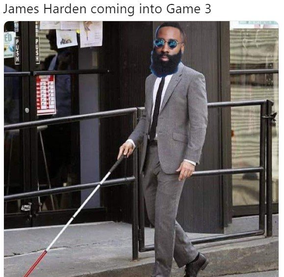哈登在G2的比赛里眼睛受伤,双眼充血。