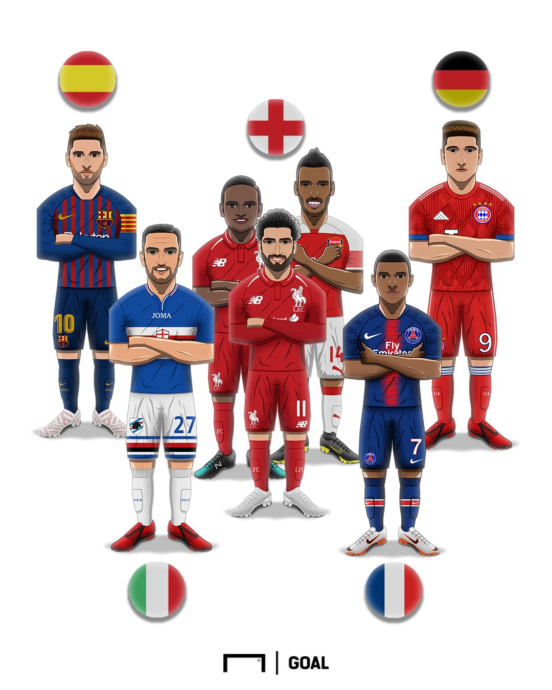 排在后面的还有英超的马内、萨拉赫、奥巴梅杨并列的22球,以及德甲莱万的22球。
