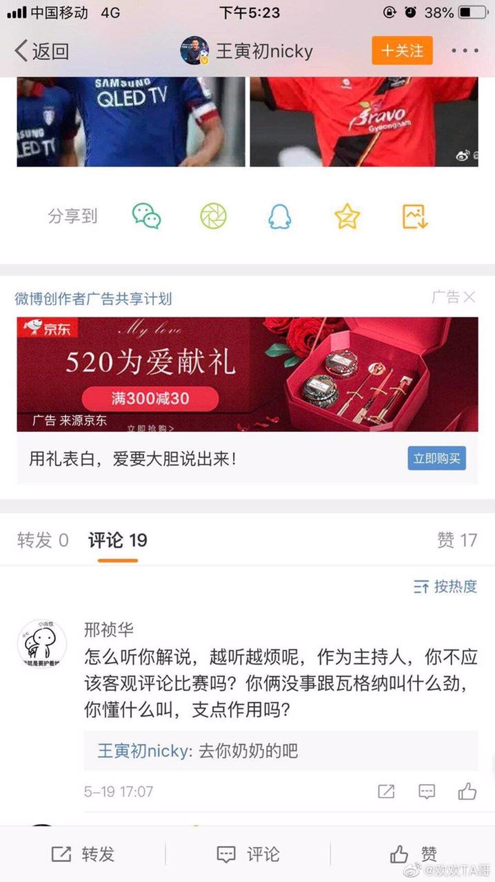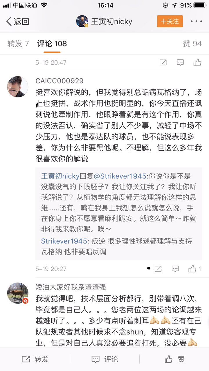 他叫王寅初,瓦格纳不进球快把它逼疯了!还在骂球迷,挑拨天津两队关系,这个频道快完了之前靠权健活着,现在靠假表假药广告活着也许您还喜欢:世界杯直播 亚洲杯直播 欧洲杯直播 足球直播