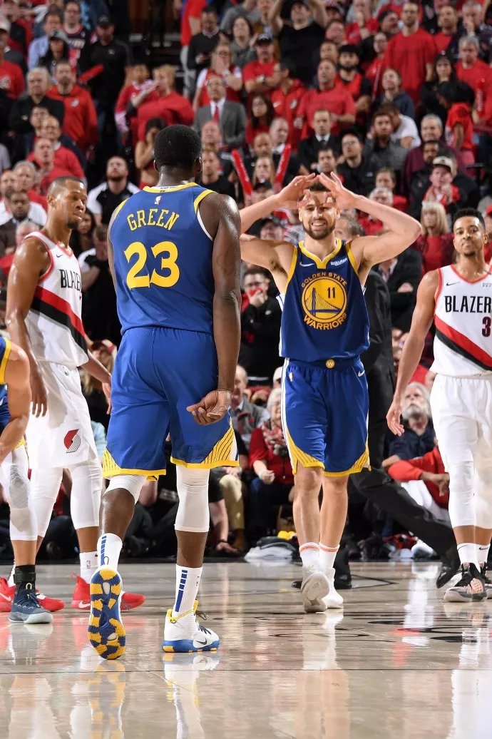 第三节剩1分48秒,伦纳德投进中距离,开拓者领先17分,本场最大分差。西决G2、G3,开拓者也曾领先过这么多,优势建立在上半场,勇士队终结危机于第三节,两场比赛几乎无差别的饰演着相同剧情,只是换了几个在阵球员,更改了些佐料。整体论调是不变的,即便勇士是逆转的一方,主力相继缺阵,可他们却似炉火纯青的宗师,悉心照料着案板上的对手,刀俎与鱼肉,勇士队毫无悬念以前者的角色撑起了风头。