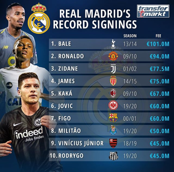 如果这两笔交易达成,皇马将在夏天买仅4个身价排进队史前十的球员,是真的有矿啊?