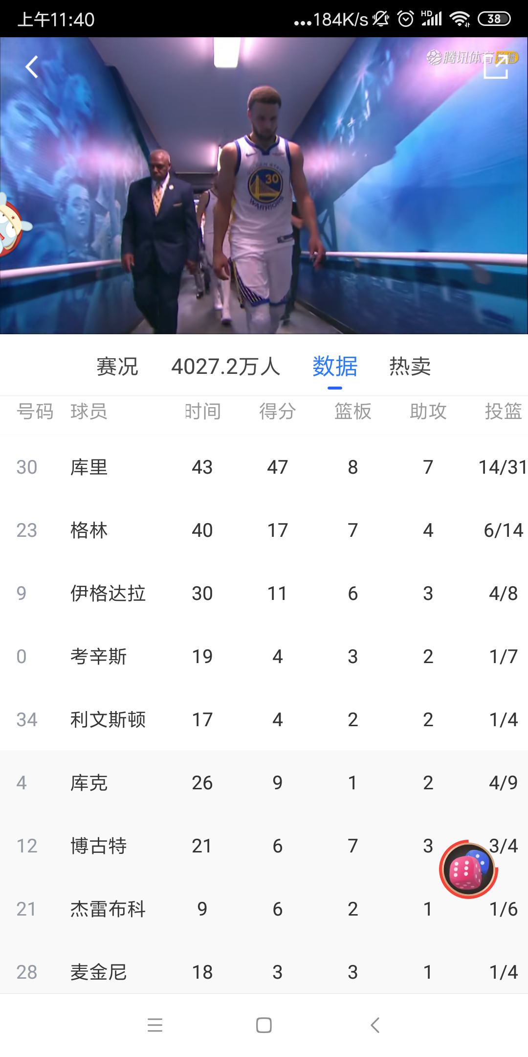 到底谁才是单核带队。没见过这么拼的库里,今天真是炸了,厉害。也许您还喜欢:世界杯直播 亚洲杯直播 欧洲杯直播 足球直播
