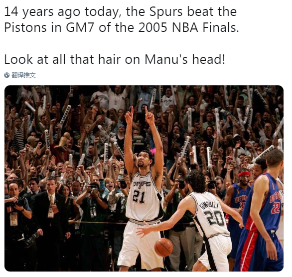 14年前的今天马刺获得队史第三冠 美媒却在调侃马努的头发