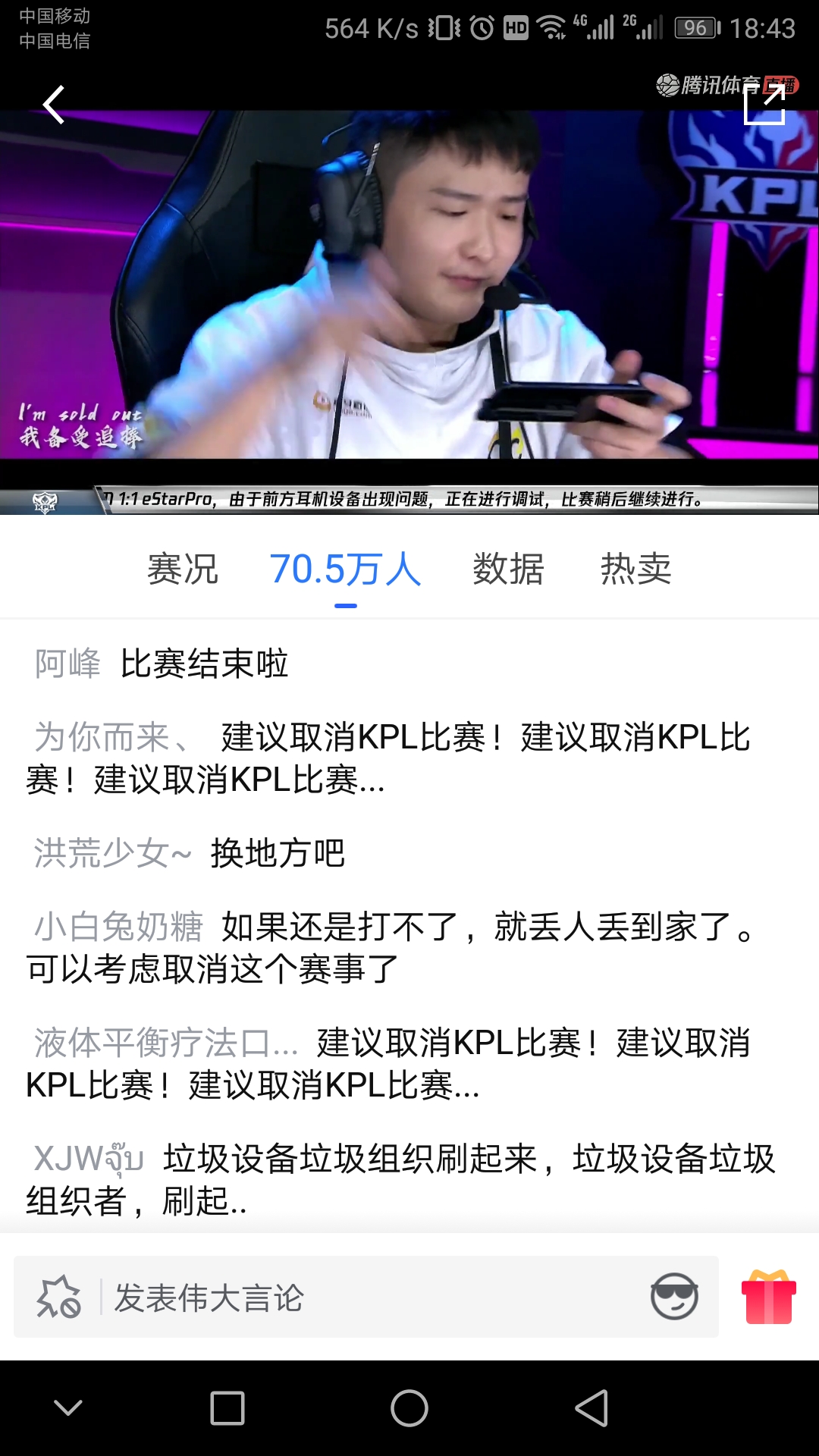 前几天那个西安决赛就让人笑死今天再来个这还有脸办比赛吗策划是没想过天气情况还是没看天气预报啊换个耳机要这么久吗还在腾讯体育办还在NBA直播厅直播真是丢脸笑柄