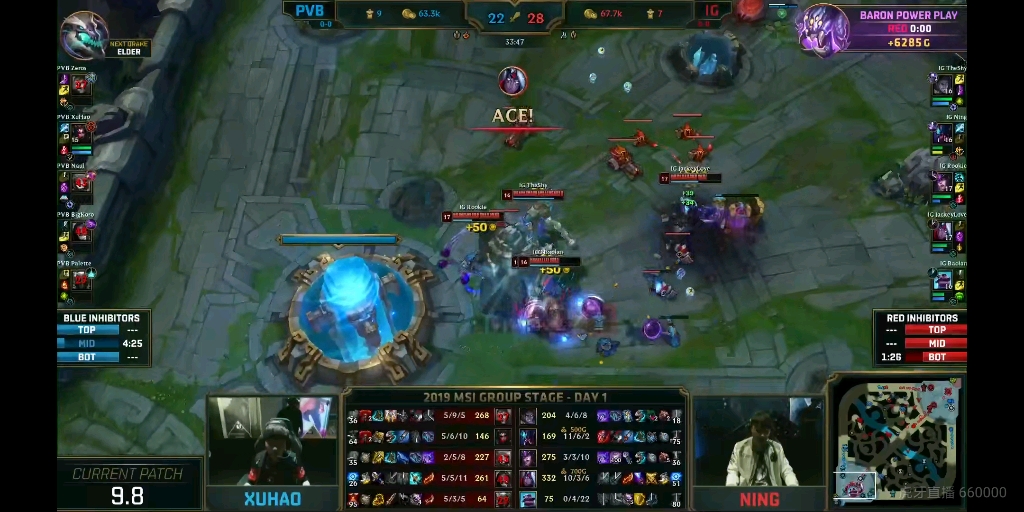 虽然说IG一直就是一个打架队,但是这把PVB打起架来还真没劣势,前期他们成功的压制住了TheShy,中期也依靠单带拿掉了下路高地。