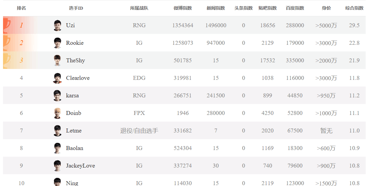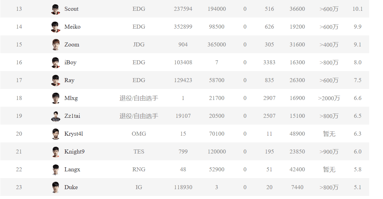 在中国电竞价值排行榜上更新了很多实锤消息,包括Letme退役,TOP改名TES,Langx加盟RNG,这也证实Mlxg已退役的真实性也许您还喜欢:世界杯直播 亚洲杯直播 欧洲杯直播 足球直播