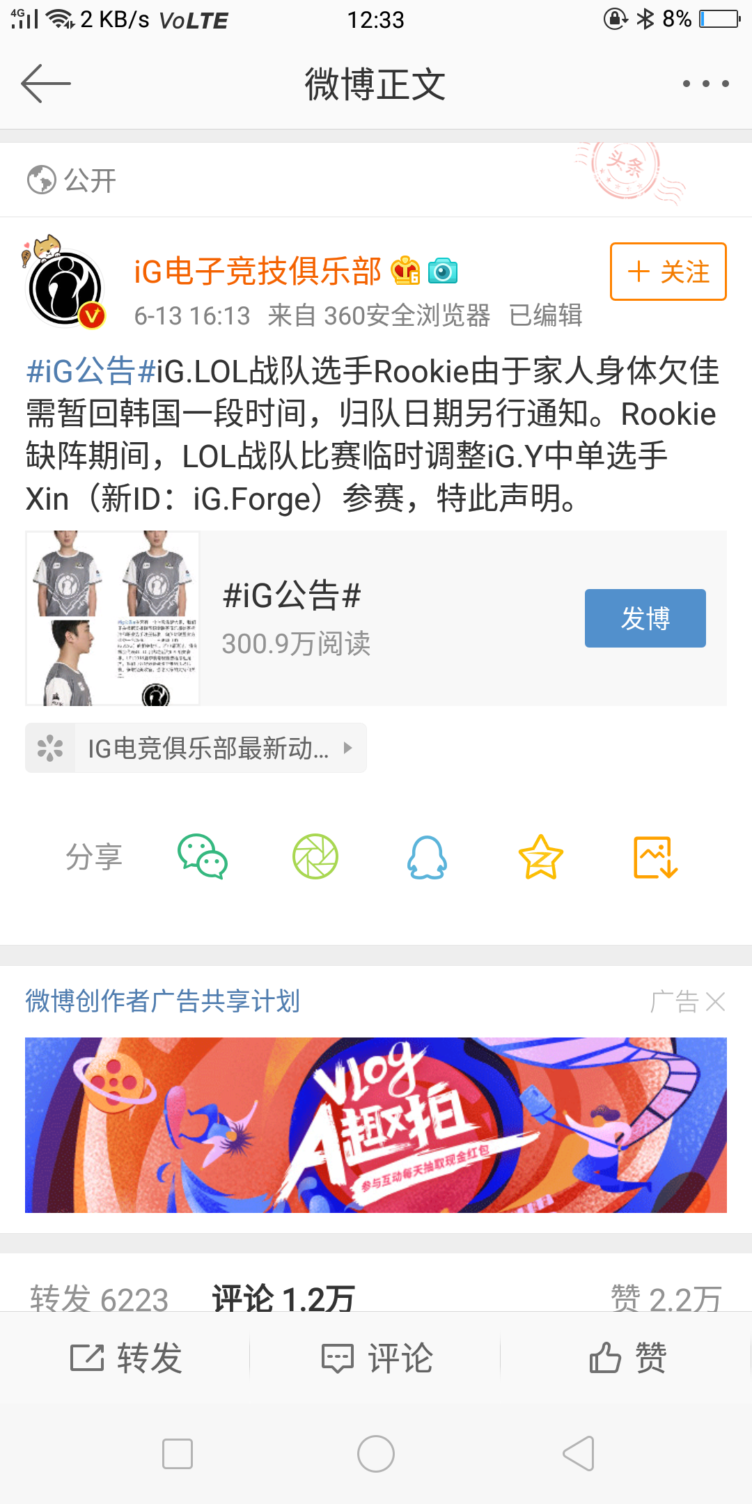 Msi的失利让ig有些自乱阵脚,夏季赛大有一蹶不振的势头,现在rookie又因为家庭原因回到韩国,ig应该也是怕队伍成绩不好所以赶紧换上宝蓝,如果夏季赛再这样下去,成绩有些无望了。希望ig能找准自己的方向一往无前啊也许您还喜欢:世界杯直播 亚洲杯直播 欧洲杯直播 足球直播