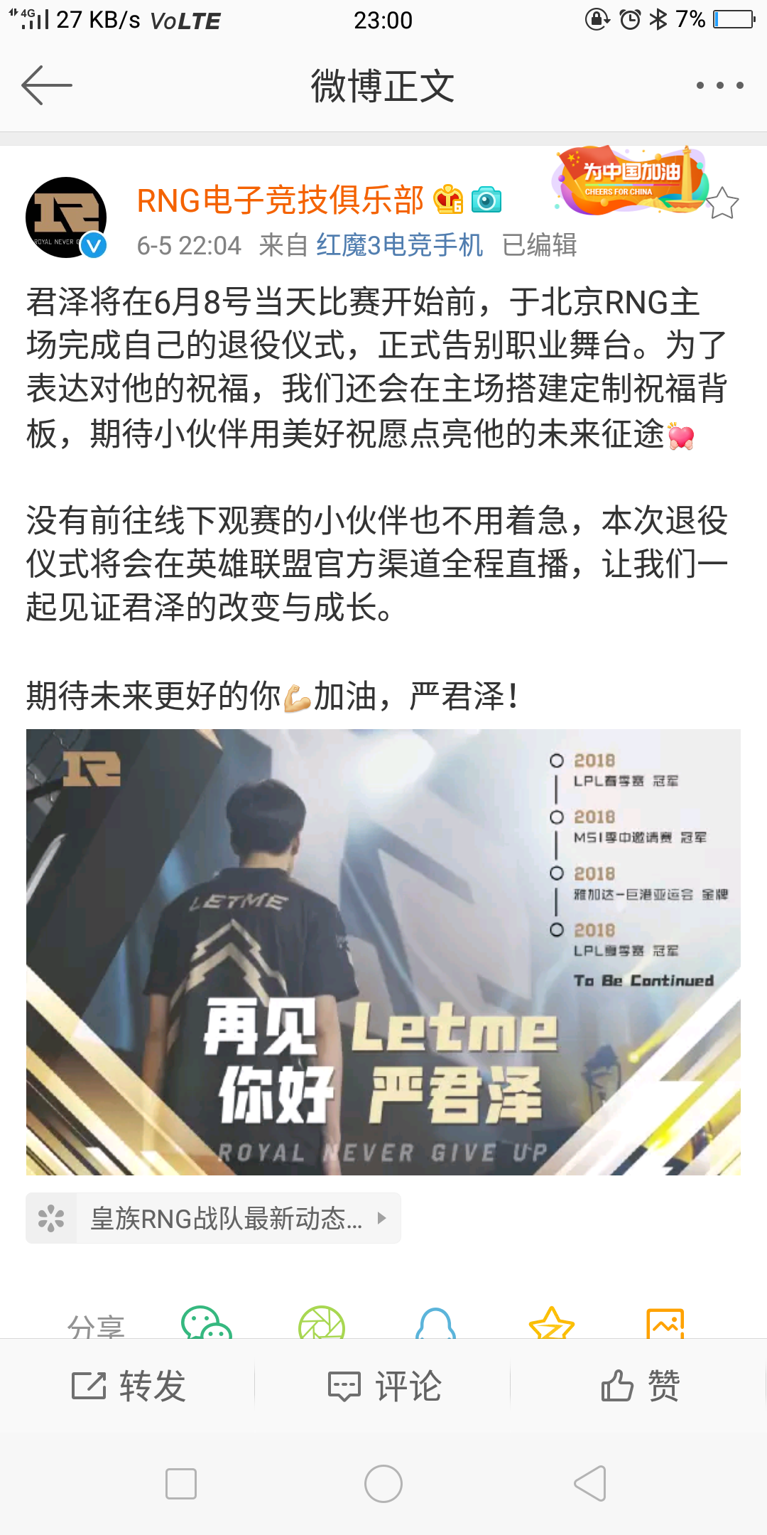 希望能在6.8打最后一场比赛,作为粉丝,等了太久了,真的想再看你打最后一场,哭了也许您还喜欢:世界杯直播 亚洲杯直播 欧洲杯直播 足球直播