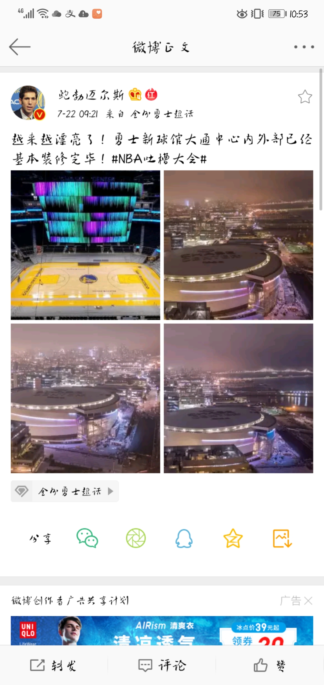 [库里][克莱][追梦] 越来越好,坐落于繁华地段的大通中心,气势如虹! 你对新赛季勇士有什么想说的?请在评论区许下你的心愿!欢迎留言[憨笑][憨笑][憨笑]也许您还喜欢:世界杯直播 亚洲杯直播 欧洲杯直播 足球直播
