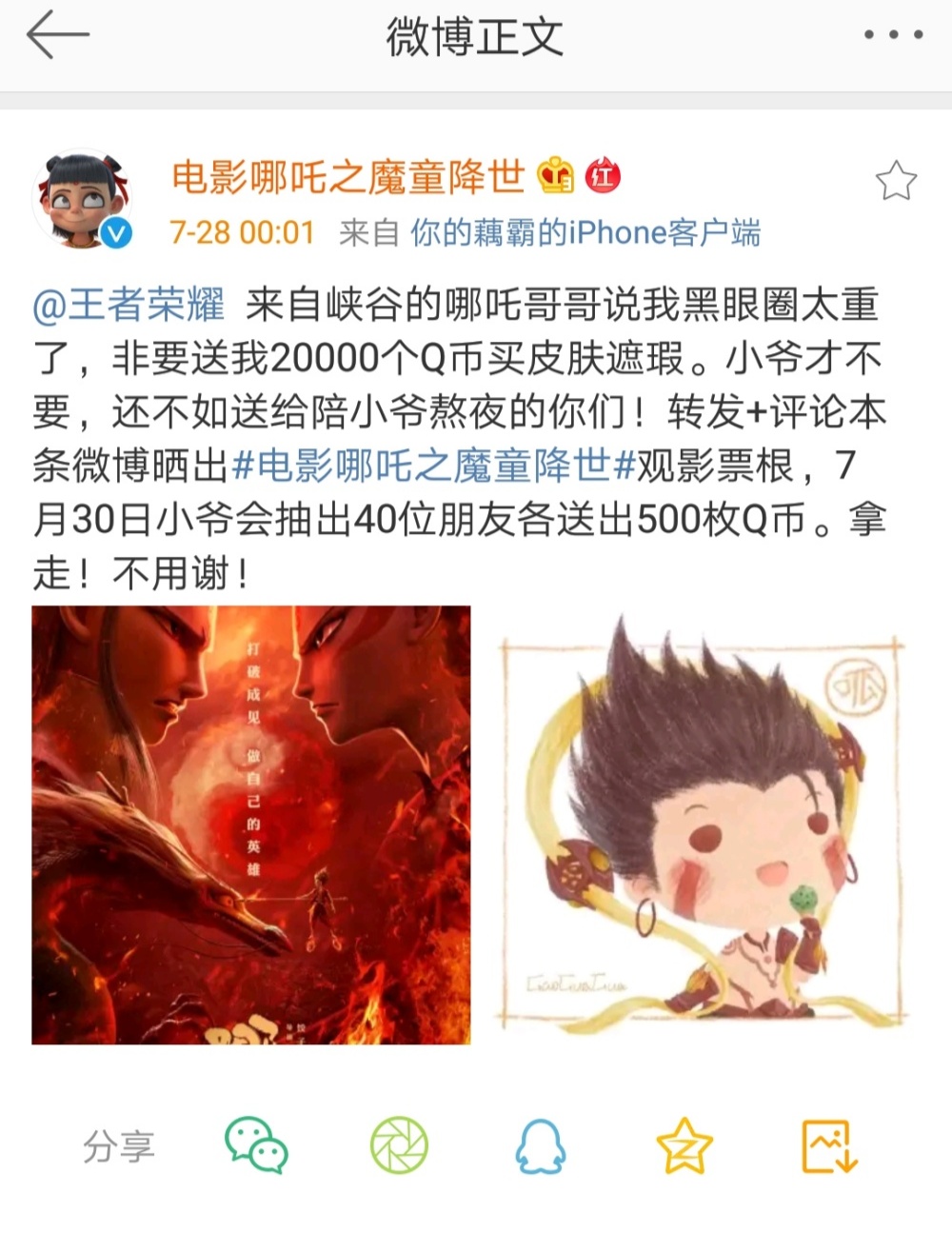 电影哪吒官博艾特王者荣耀官博,这是要出联动皮肤了?