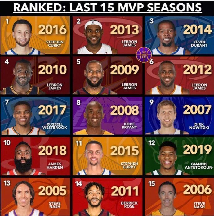 美媒评价2005年致今的MVP排名,兄弟们你们怎么看[微笑]我认为kd高了,威少和登哥低了[傲慢]也许您还喜欢:世界杯直播 亚洲杯直播 欧洲杯直播 足球直播