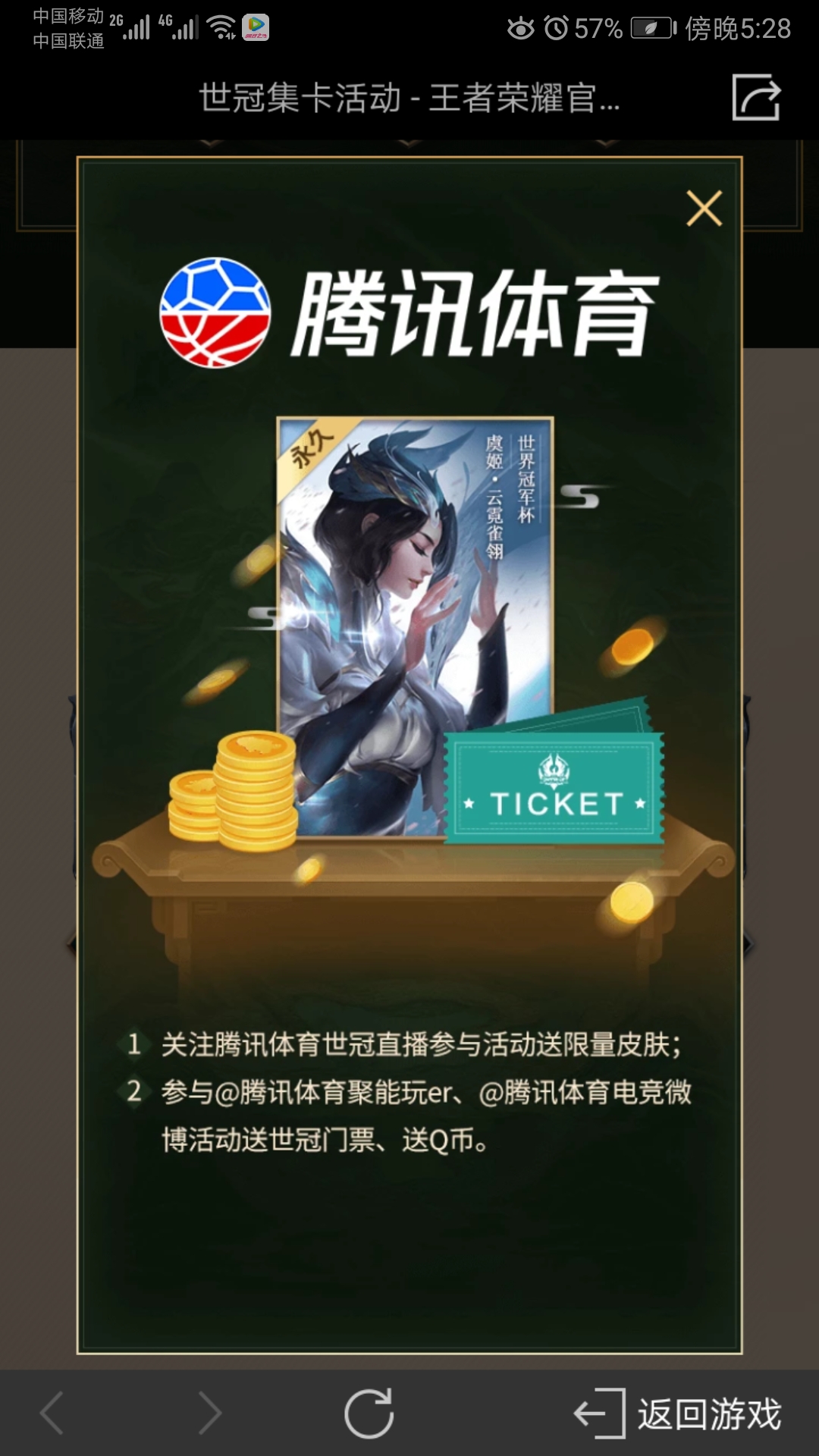 @腾讯体育聚能玩er@腾讯体育电竞微博活动送世冠门票、送Q币