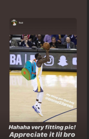 库兹马发表了一个P图,追梦背上了一个书包,里面装着钱?