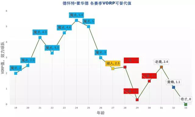 2013年德怀特.霍华德来到哈登身边时,时年28岁,在最好的年纪,火花却已经没有了最好的状态。在经历了湖人的一个失败的赛季后,霍华德在火箭的赛季VORP也仅仅只有2.4,仅仅回到了刚刚进入联盟初期的水准。在火箭三个赛季,霍华德常规赛出场71场、41场、71场,受到伤病困扰,霍华德这种没有篮下进攻脚步和投射能力的传统“美式中锋”已经陨落为凡人。